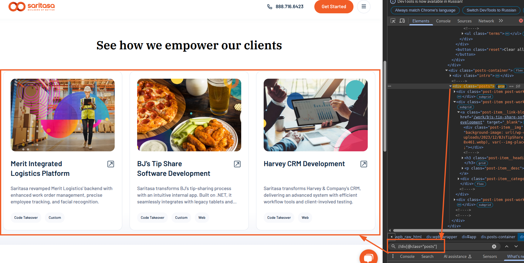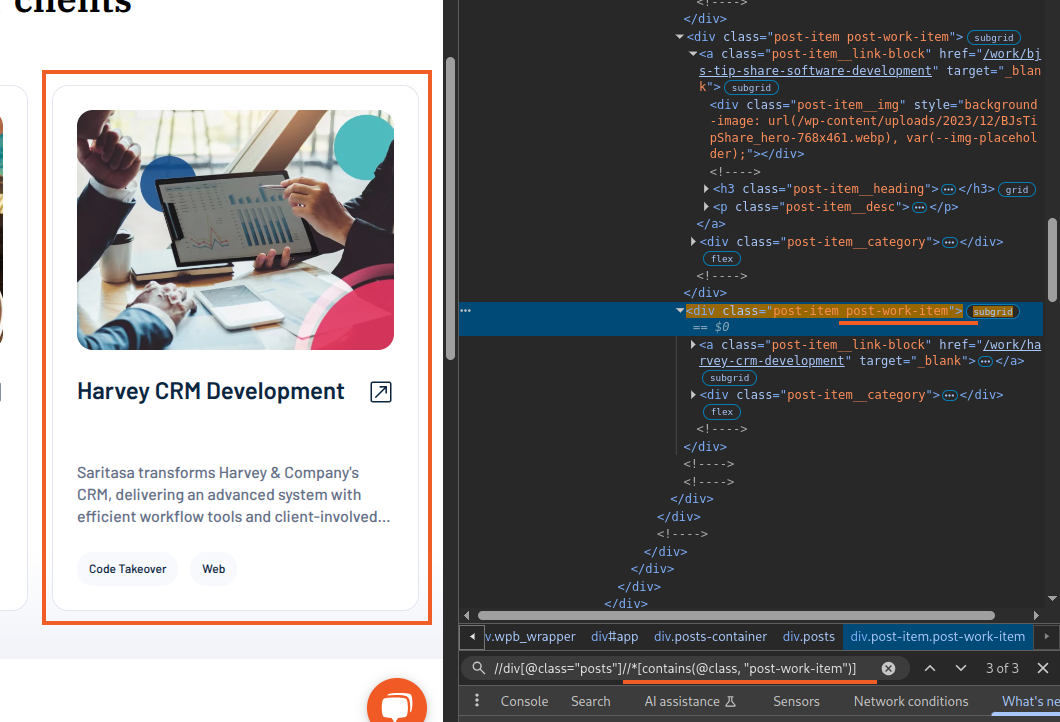 from pomcorn import locators from selenium import webdriver chrome = webdriver.Chrome() chrome.get("https://www.saritasa.com/work/type-code-takeover") posts_list_locator = locators.ClassLocator(class_name=”posts”', exact=True) post_locator = posts_list_locator / locators.ClassLocator(”post-work-item”) chrome.find_element(*post_locator)
